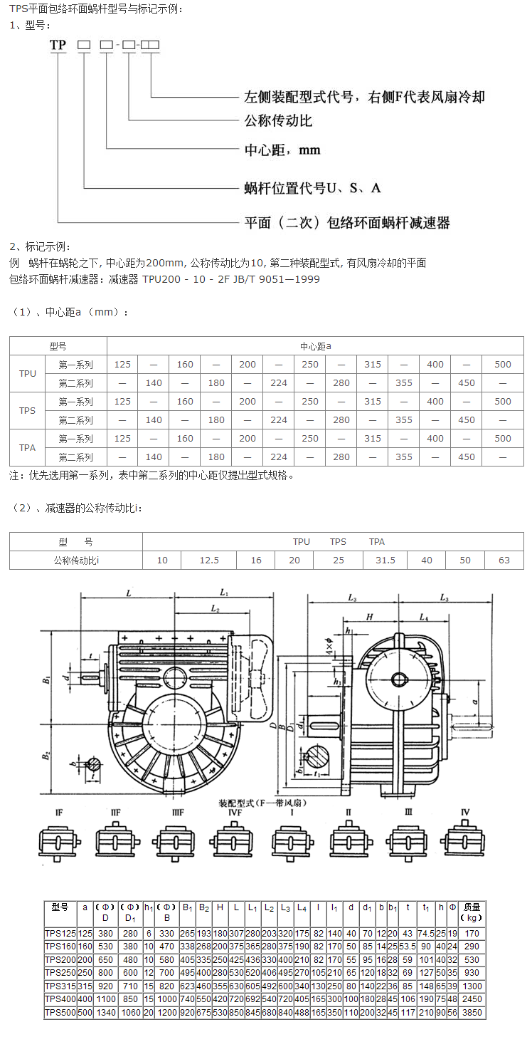 TPS平面包络环面蜗杆减速机适用于工作环境温度为-40℃~+40℃,输入轴转速不大于1500转/分,输入轴可正反两方向旋转。