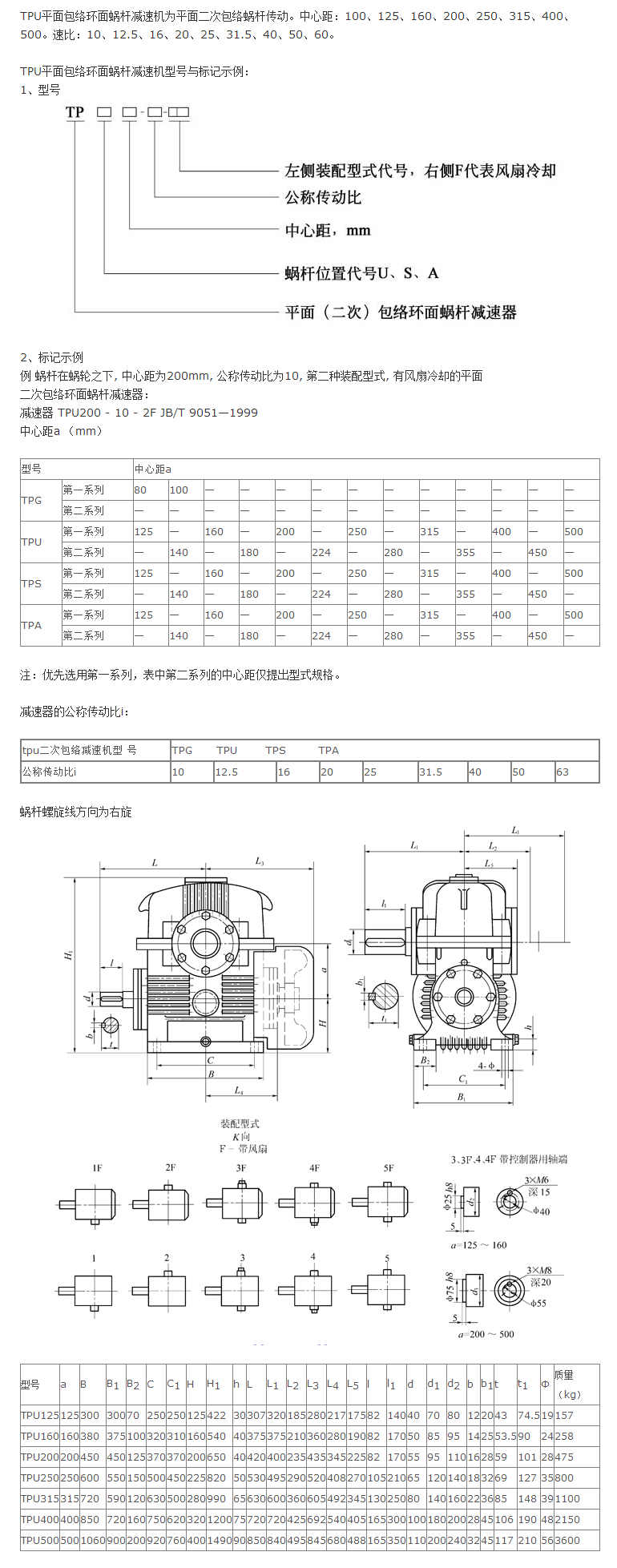 TPU平面包络环面蜗杆减速机是一种新兴的传动装置,其承载能力大,传动效率高,结构紧凑、合理。此减速机是按照中华人民共和国机械行业标准JB/T9051——1999《平面包络环面蜗杆减速机》设计制造。减速机是一种动力传达机构,利用齿轮的速度转换器,将电机(马达)的回转数减速到所要的回转数,并得到较大转矩的机构。在目前用于传递动力与运动的机构中,减速机的应用范围相当广泛。