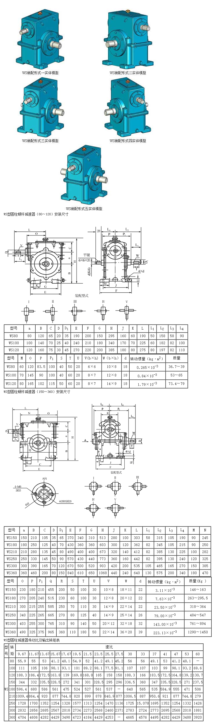 WS型圆柱蜗杆减速器适用范围该标准为一级传动的阿基米德圆柱蜗杆减速器;WS(蜗杆上置)WD(蜗杆下置)。(蜗阿基米德圆柱蜗杆减速器适用于蜗杆啮合处滑动速度不大于7.5m/s;蜗杆速度不超过1500r/min;工作环境温度为-40~+40℃;并可正、反方向运转的场合。