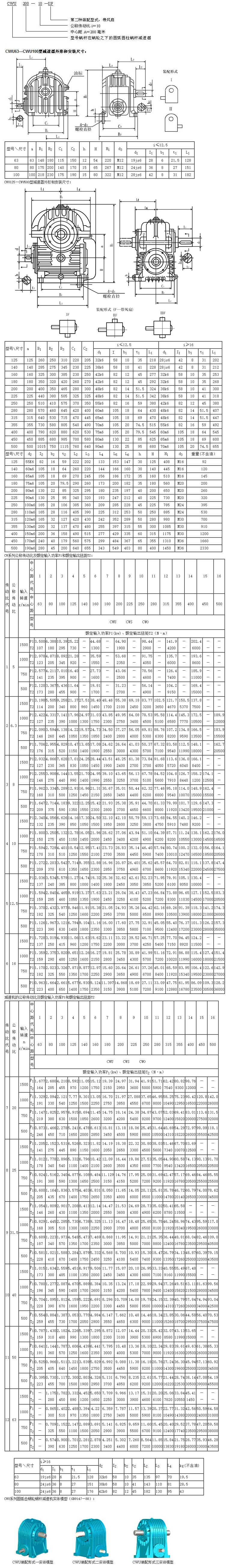 主要包括:CWU 蜗杆在下型 CWS 蜗杆在侧型 CWO蜗杆在上型
