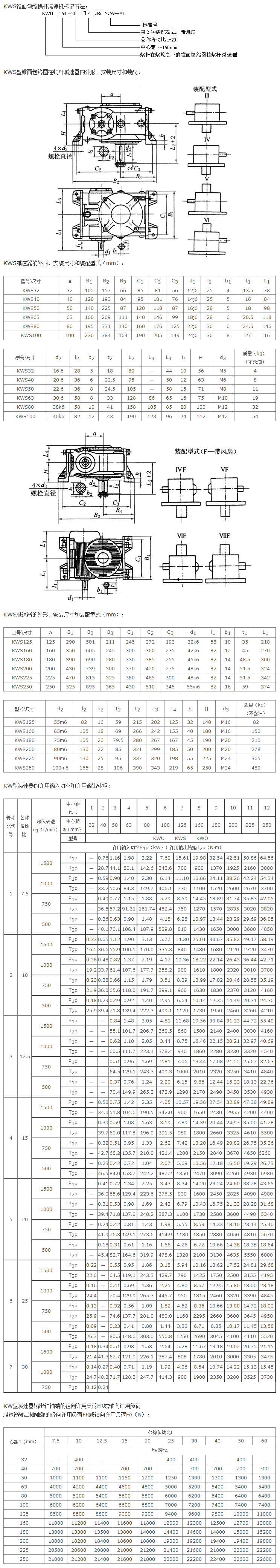 KWS锥面包络蜗杆减速机工作条件为:蜗杆转速不超过1500r/min;工作环境温度为—40~+40℃,当工作环境温度低于0℃时, 起动前润滑油必须加热到0℃以上或采用低凝固点的润滑油;可正、反双向运转。这类减速器适用于冶金、矿山、起重、运输、化工、建筑及轻工等行业。