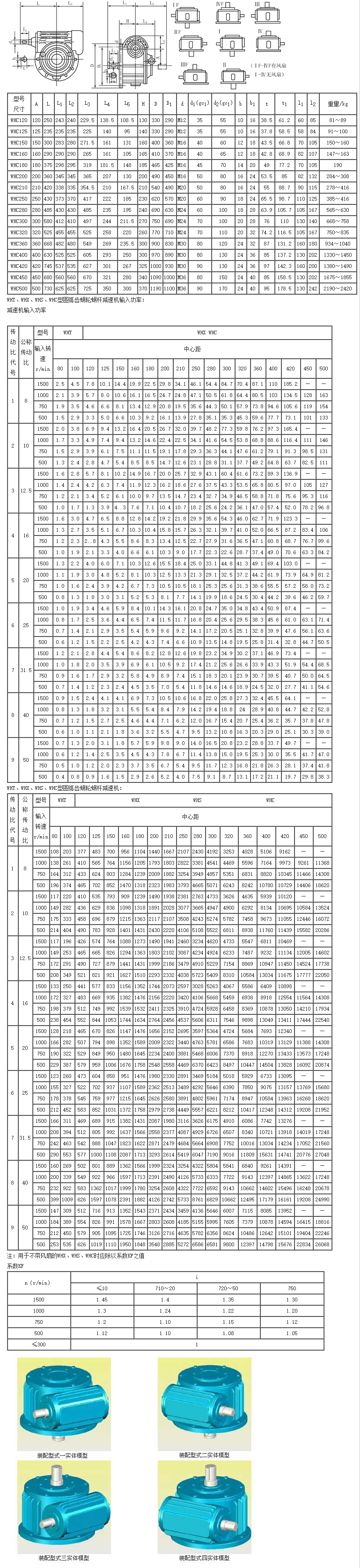 WHC圆弧齿蜗轮蜗杆减速机安装型式及尺寸: